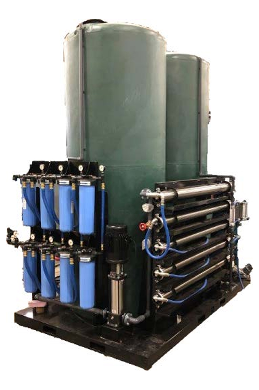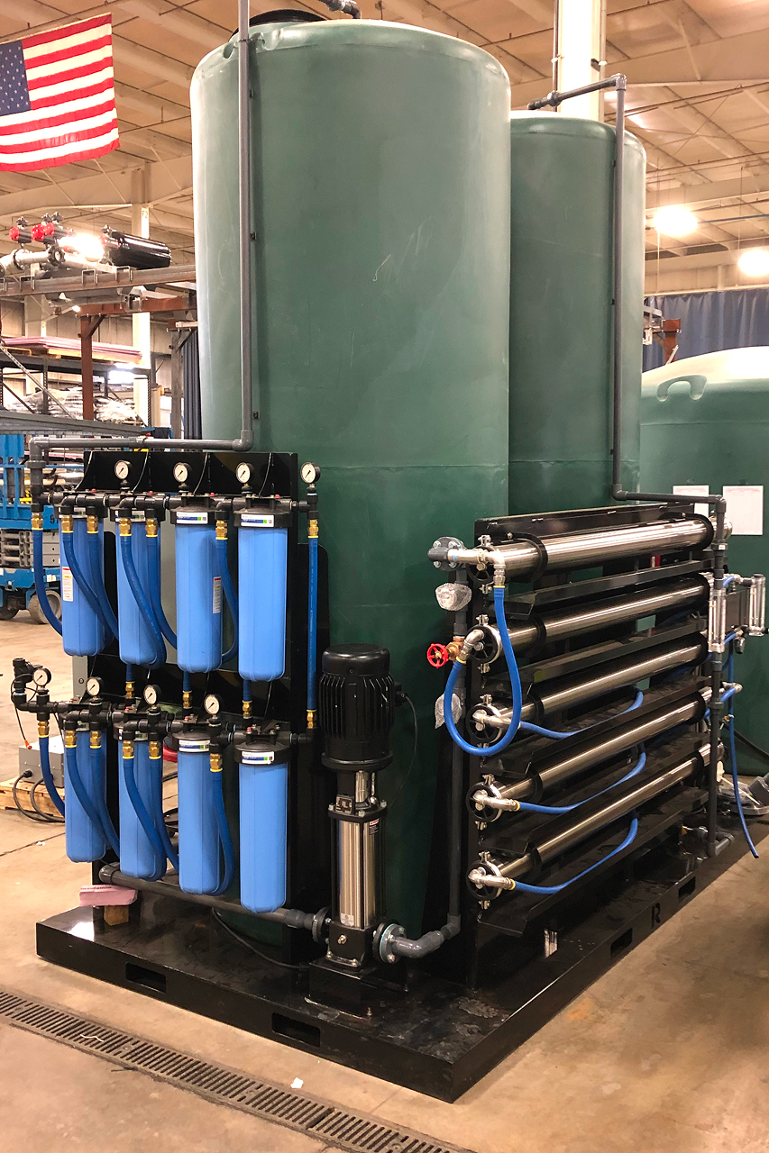The Inlet Water Treatment Skid prepares incoming water for equipment washing operations. This automated system uses water softening, carbon filtration and reverse osmosis to manage pH and TDS levels to create water quality for operations that require precise water chemistry.